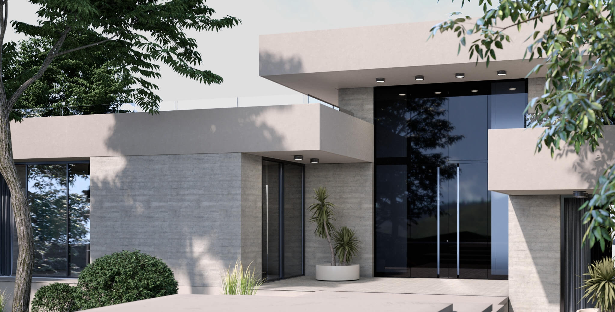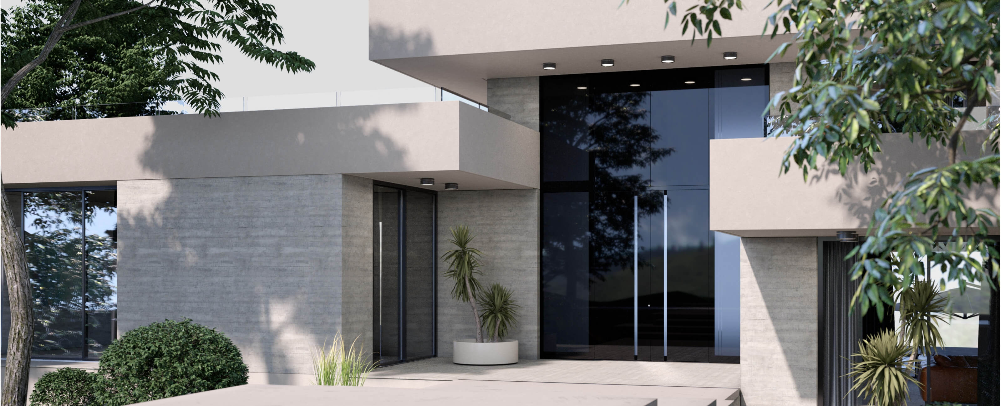 - Materialkombinationen von Glas über Aluminium bis hin zu Beton