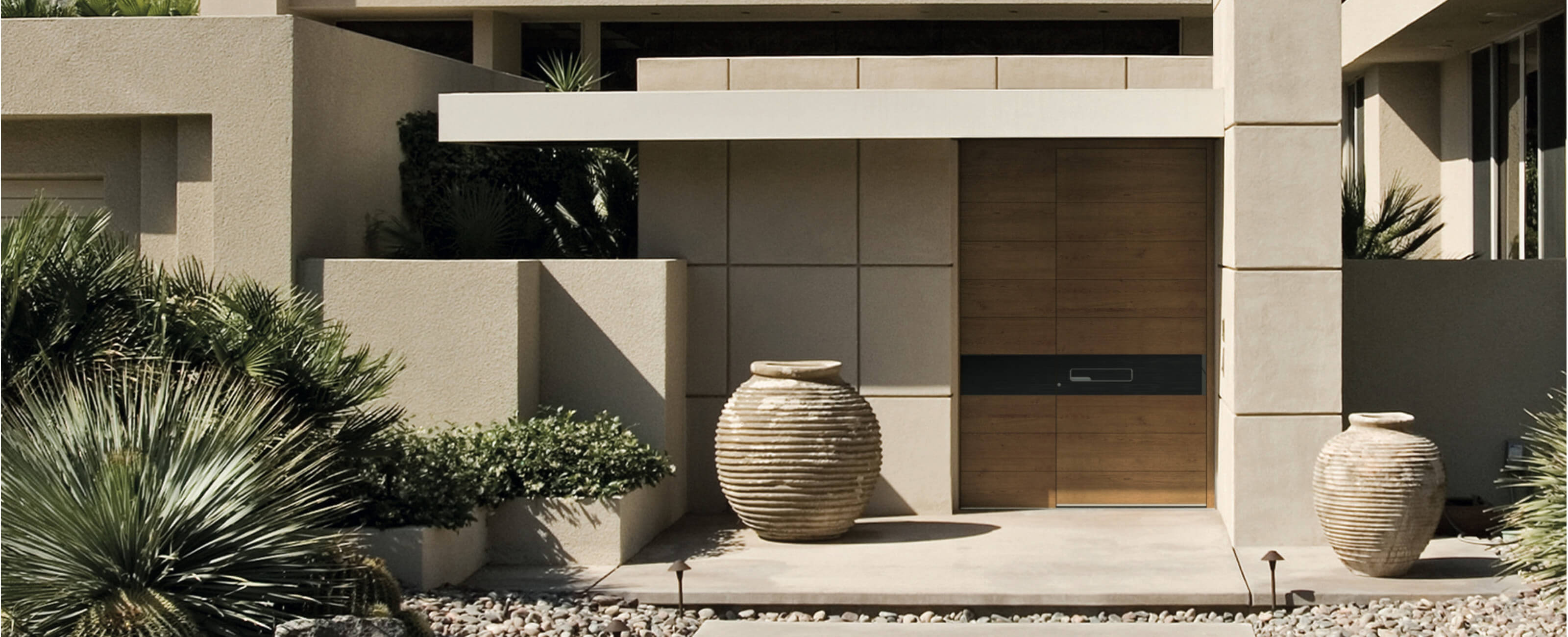 Die massive individuelle Serie aus Eiche Ultimum Pure ergänzt mit dem eleganten Griff Luxor und in geölter Ausführung auch avantgardistischste Architekturstile in wundervoller Weise. Alle Türelemente sind ästhetisch bündig in einer einheitlichen Linie, das Holz verleiht trotz modernem Look ein Gefühl der Behaglichkeit. Haustüren Holz mit Seitenteilen aus Glas werten den Eingang monumental auf. Mehr natürliches Licht kann einfallen.
