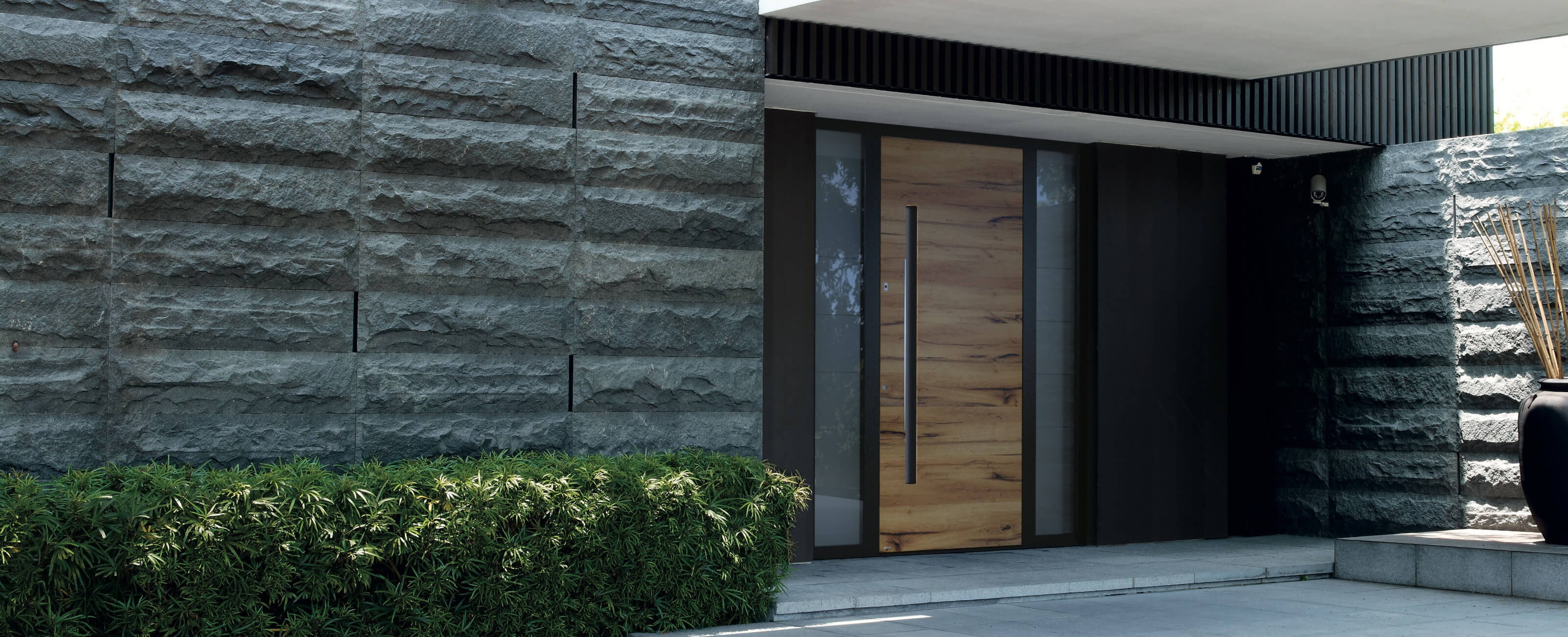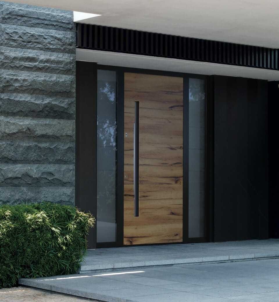 Alu-Haustüren sind außerordentlich widerstandsfähig gegen Witterungseinflüsse und verfügen über eine ausgezeichnete Wärmedämmung. Sie lassen sich präzise bearbeiten und bieten unendliche Gestaltungslösungen. Werden alle Eigenschaften addiert, kann man sich in der Tat eines massiven Eingangs sicher sein.