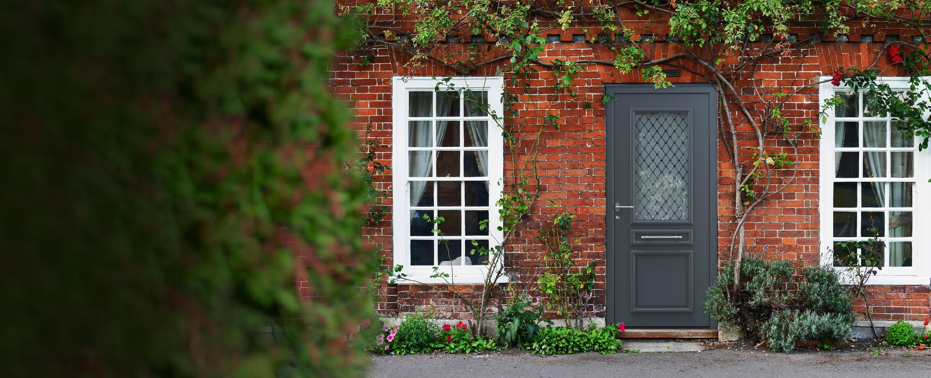 Mit einer grauen Haustür im urig-klassischen Design setzen Sie die historische Fassade Ihres Hauses perfekt in Szene und beweisen Gespür für Ästhetik.