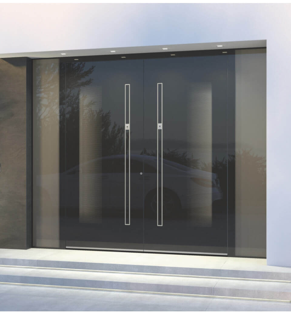 Die Auswahl reicht unter anderem von Außen- und Innen-Farben bis zu beleuchteten Kristall-Griffen, satiniertem, sandgestrahltem oder gefärbtem Glas mit oder ohne Sprossen für die beidseitigen Verglasungen, Beschriftungen, dekorativen Wetterschenkeln, Fingerprint-Scannern und einer Bodenambientbeleuchtung. Natürlich wählen Sie auch das Material der Tür: Wir bieten Haustüren in Aluminium, Holz und Holz-Aluminium mit serienmäßig flügelüberdeckendem Türflügel.