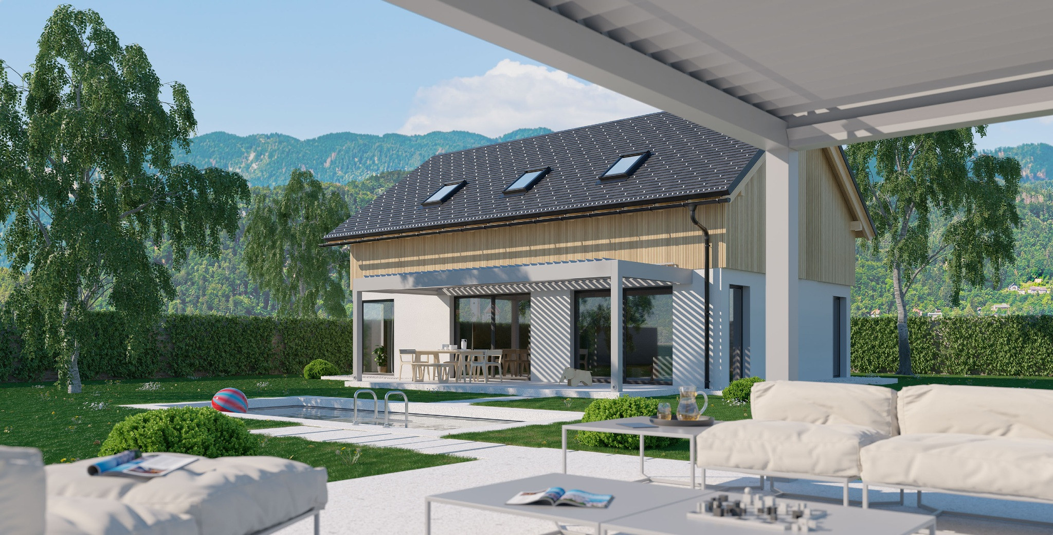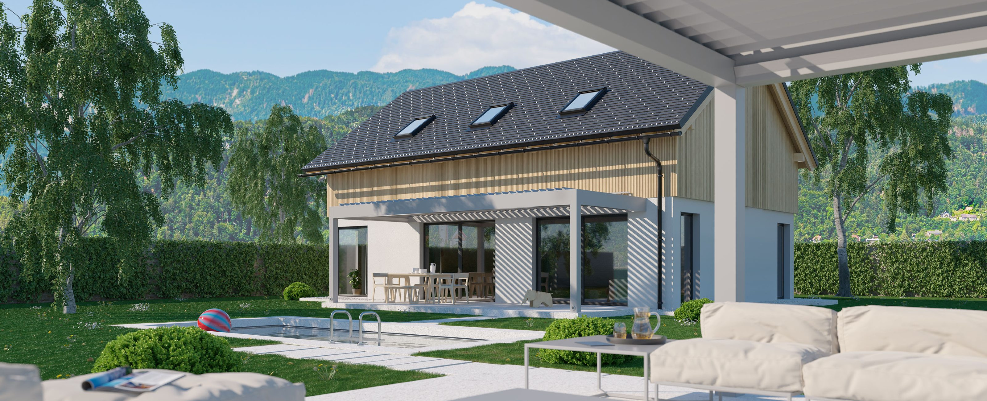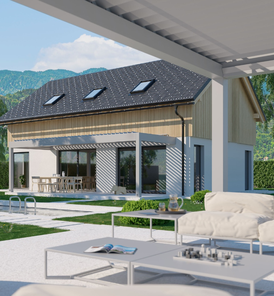 BIOKLIMATISCHE PERGOLA MIT REGENSCHUTZ