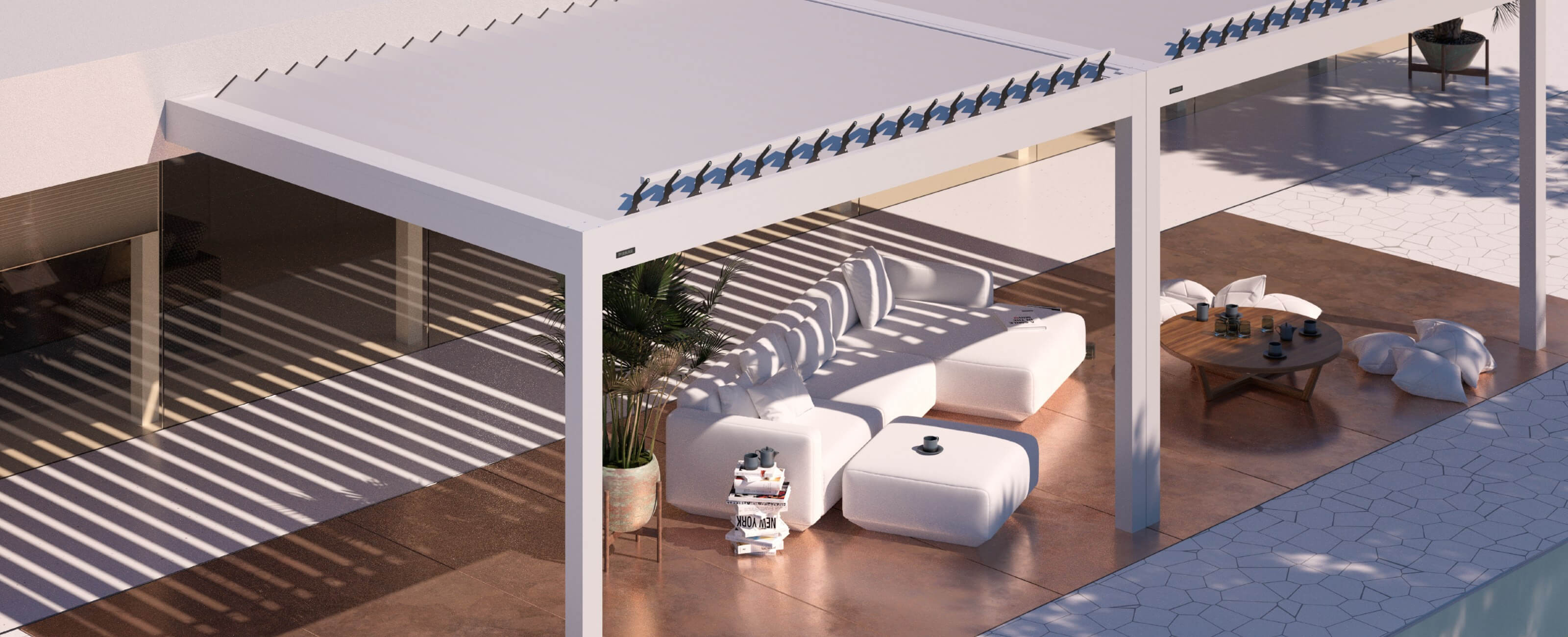 Erleben Sie den Luxus der Natur mit unserer bioklimatischen Pergola mit Sonnenschutz-Lamellen. Mit deren Hilfe können Sie den Sonnenlichteinfall nach Belieben regulieren und einen optimalen Sonnenschutz genießen.