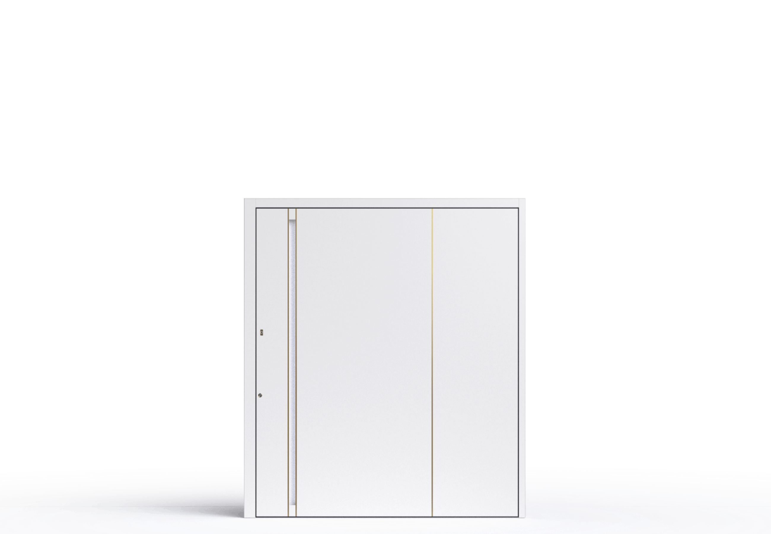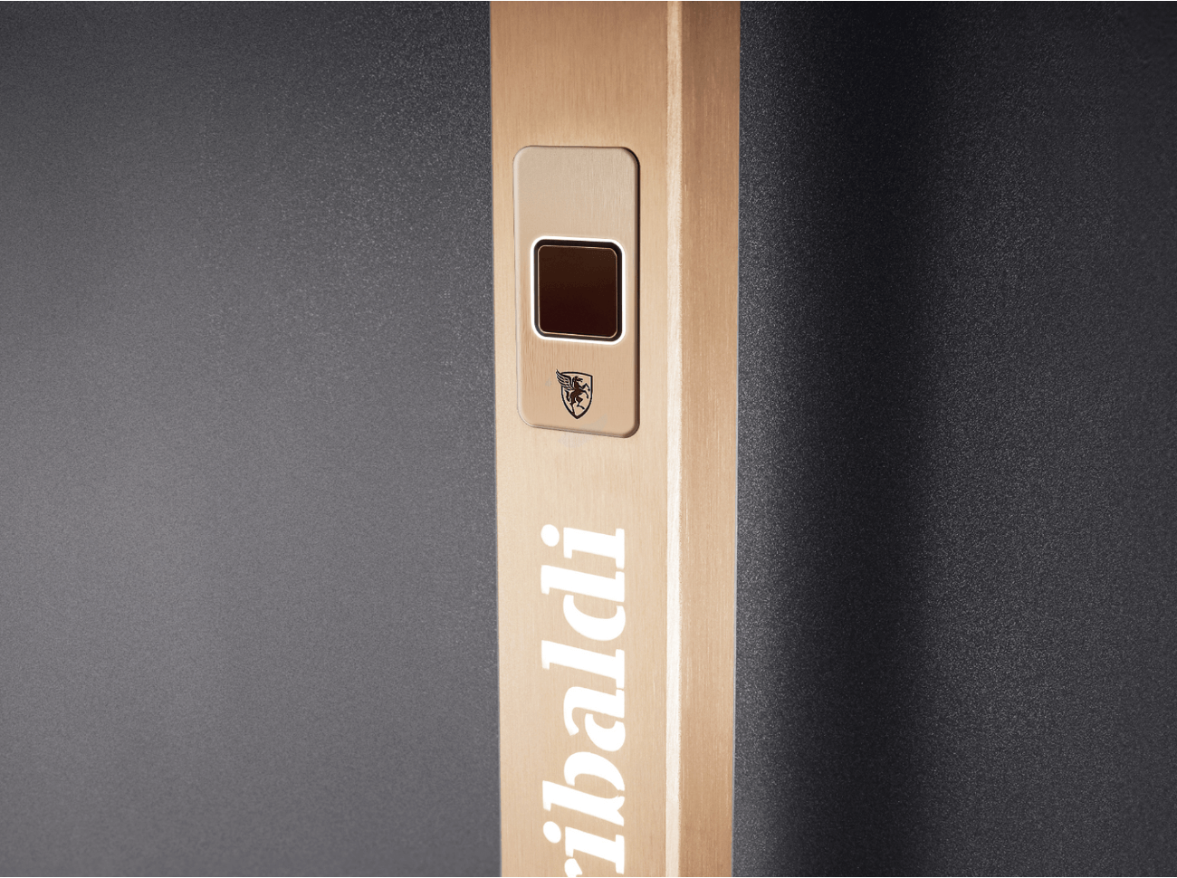 Diese anspruchsvolle Pivot-Tür wird aus robustem Aluminium gefertigt und verfügt über eine luxuriöse PVD-Beschichtung in Golden Honey. Sie beinhaltet einen eingelassenen Griff mit SmartLux-Beleuchtung sowie einen SecuroSmart-Fingerscanner, der mit dem Armo Comfort Electro-Verschlusssystem für verbesserte Sicherheit kombiniert ist.