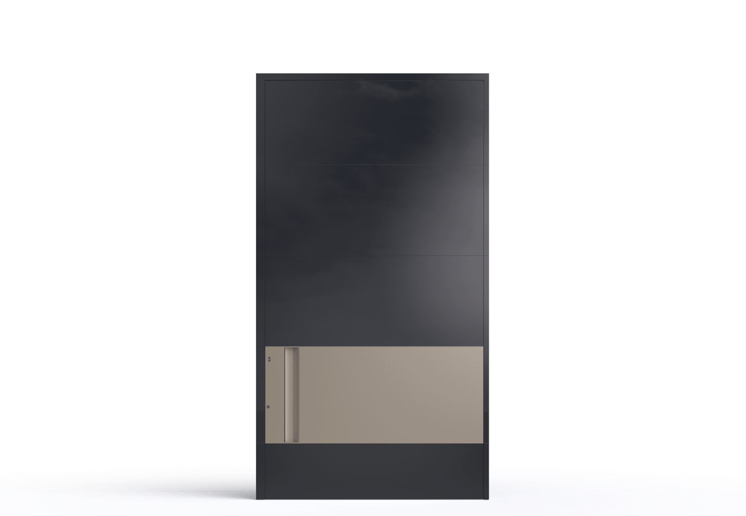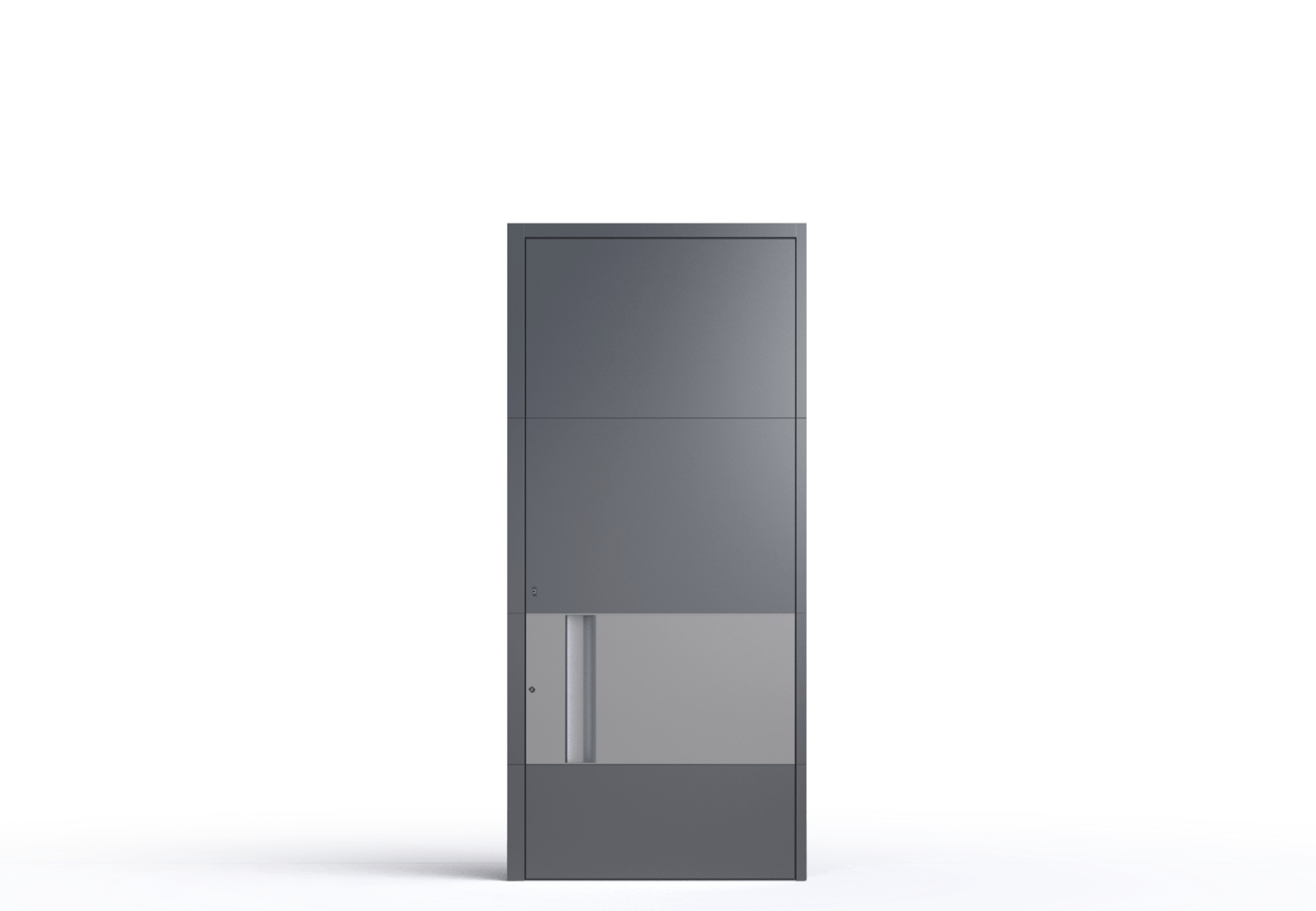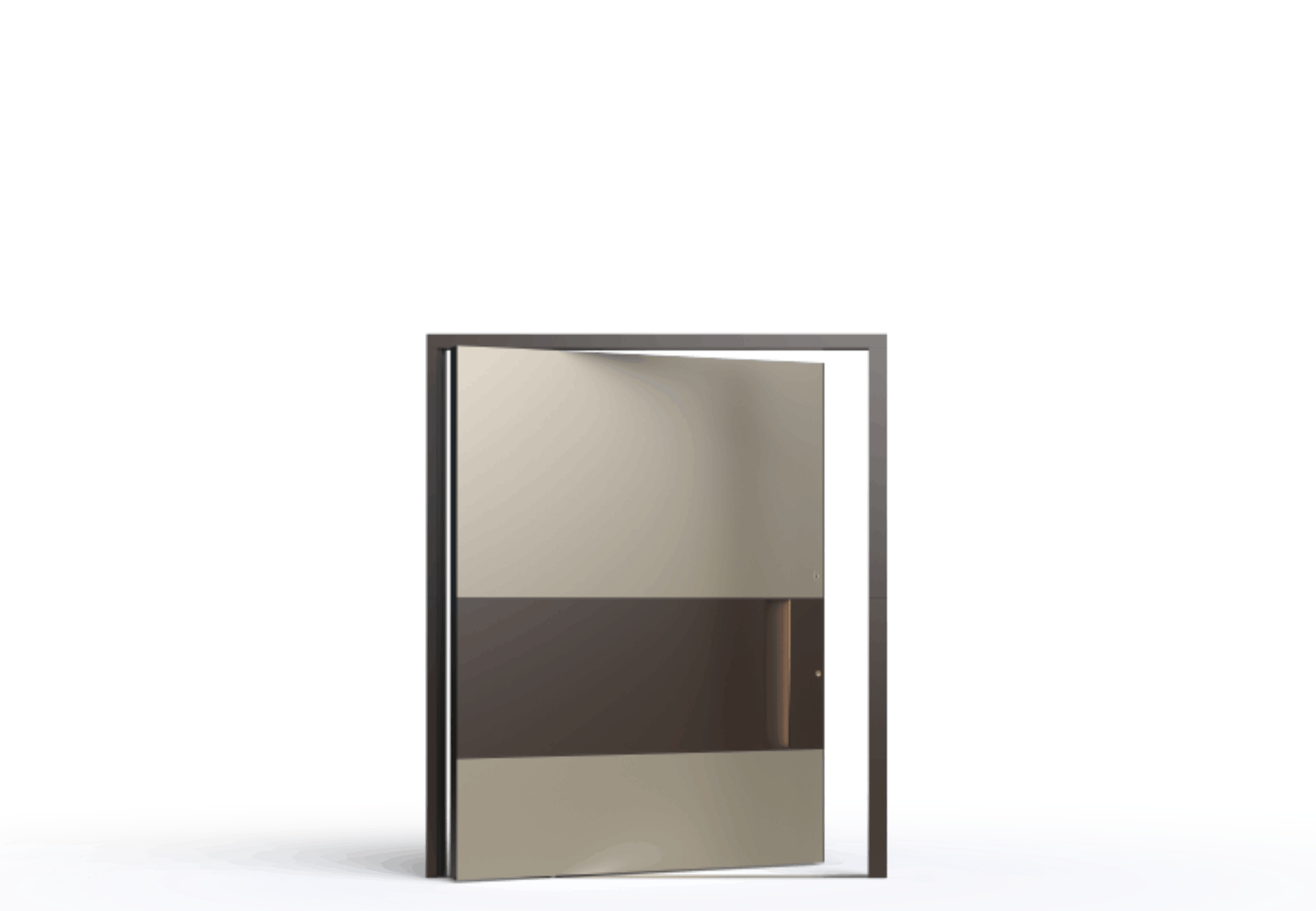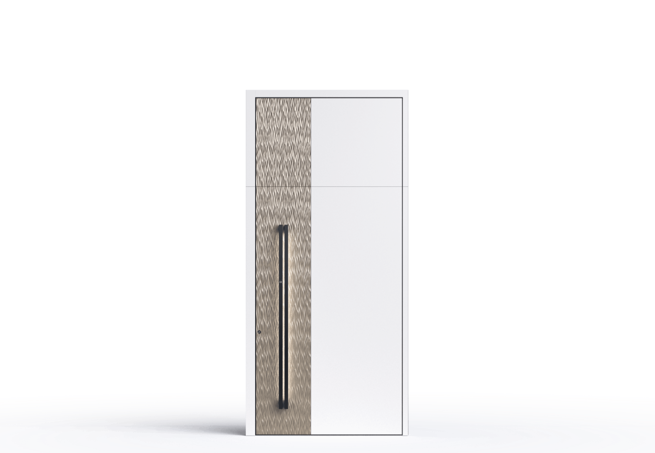 Pivot Eingangstüren können in zahlreichen Kombinationen aus Materialien, Zubehör, Farben, Dekoren und Abmessungen gestaltet werden. Die dargestellten Modelle dienen daher als Inspiration, auf deren Grundlage wir einzigartige Pivot Eingangstüren nach Ihren Wünschen entwerfen. Jedes Design verfügt über standardmäßige horizontale Teilungen innerhalb des Türblatts.