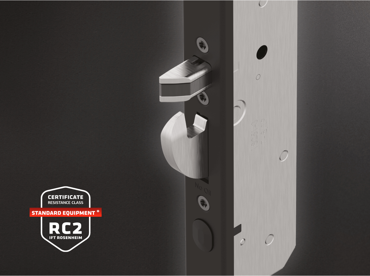 *Das RC2-Paket ist standardmäßig für Türkonfigurationen ohne Isolierverglasung erhältlich. Für Ausführungen mit Isolierverglasung im Türflügel ist das RC2-Paket optional gegen Aufpreis verfügbar.